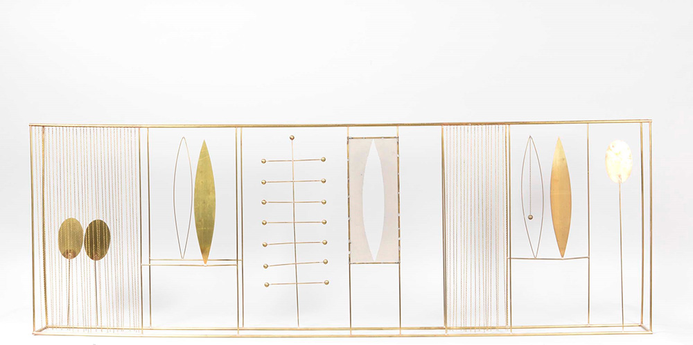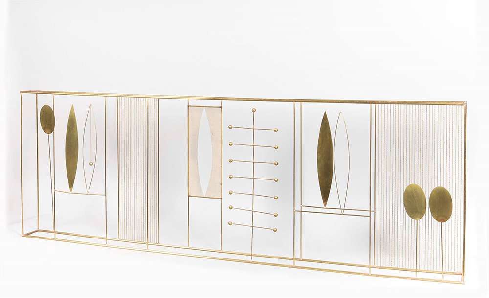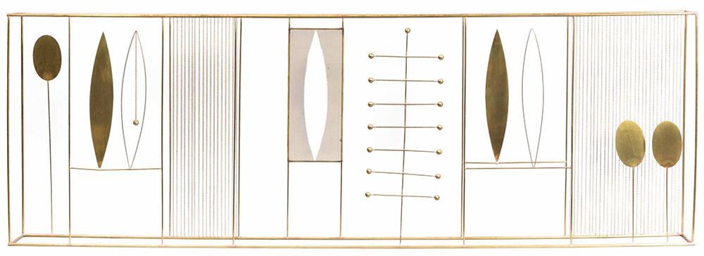 Fausto Melotti (1901-1986), Contrappunto piano, 1973, ottone, cm 62x180x12 firmato su lato esterno in alto a destra es. 91/99 Autentica dell'artista su fotografia in data 2/10/1975, Provenienza: Studio dell’artista Galleria Puntosette, Busto Arsizio, ivi acquistato dall’attuale proprietario nel 1987