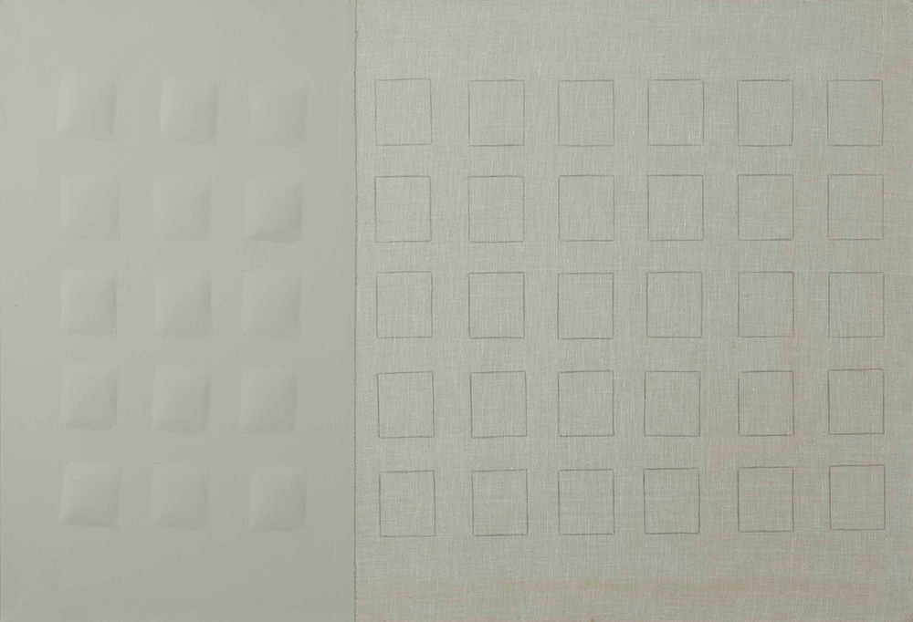 Arnaldo Esposto (1933-1996), Forme, 1963, olio su tela, rilievi estroflessi,...