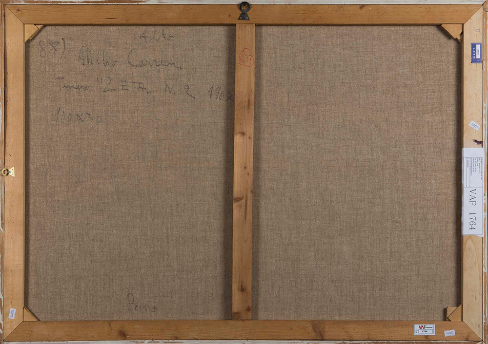 Attilio Carreri (1905-1984), Tempo zeta N. 2, 1967, olio su tela, cm 70x100 firmato, intitolato e datato al retro, Provenienza: Collezione VAF Stiftung, Francoforte sul Meno (n.1764) Bibliografia: VAF Stiftung La collezione, Catalogo generale, a cura di Daniela Ferrari, Silvana Editoriale, 2012, p. 450 col n. VAF 1764