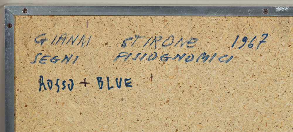 Gianni Stirone (1936), Segni fisiognomici, 1967, lacca su compensato, cm 80x100 firmato, intitolato e datato al retro , Provenienza: Collezione Feierabend, Milano