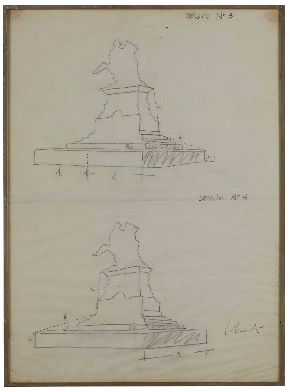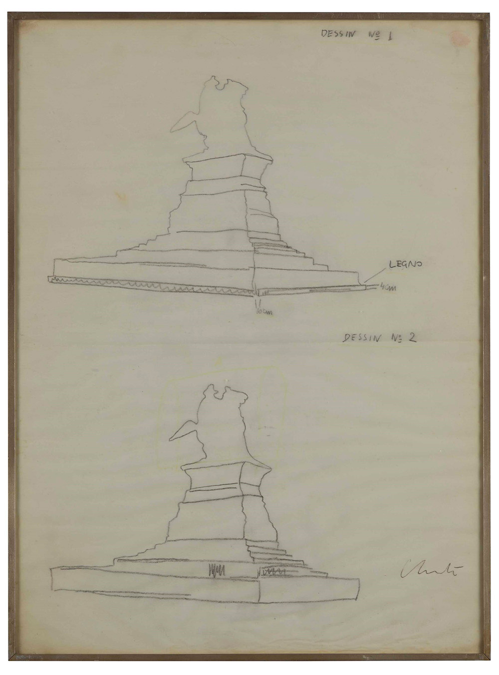 Christo e Jeanne-Claude (1935), Progetto per Piazza del Duomo, Milano, 1970 ca, Disegno 1-2 Disegno 3-4 grafite su carta, cm 43x33 firmati in basso a destra
