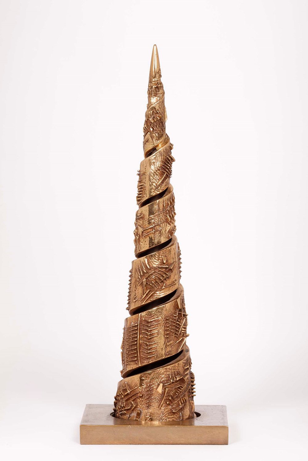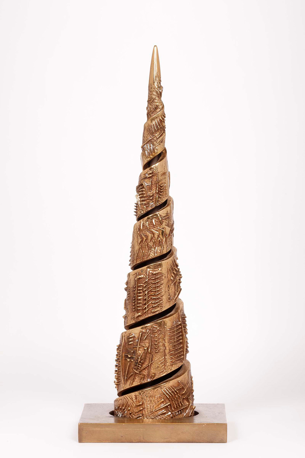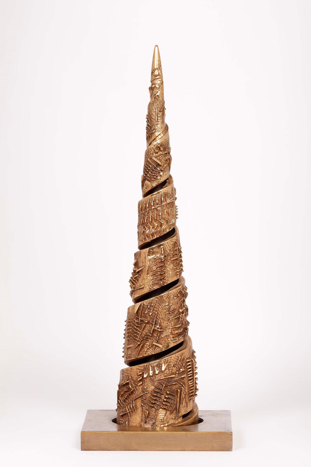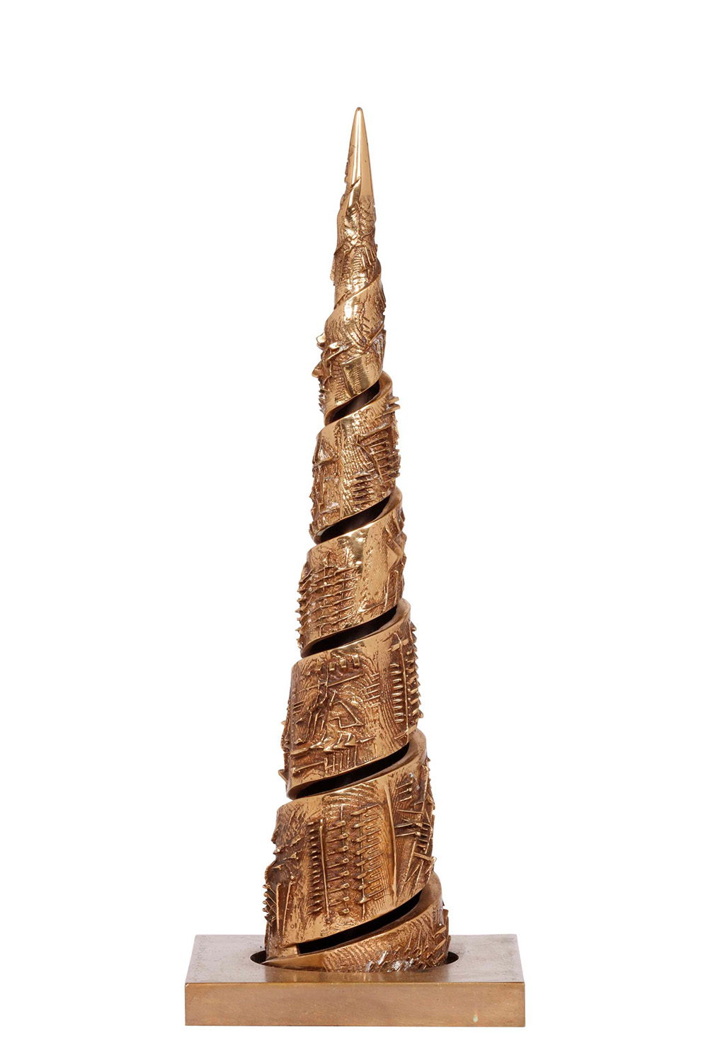 Arnaldo Pomodoro (1926), Torre e spirale, Studio I, 1985, bronzo dorato, altezza cm 40, diametro cm 8 ed. 9 + 3 prove d'artista L'esemplare in questione (firmato, con dedica, e non numerato) è una delle tre prove d'artista. L'opera è registrata presso l'Archivio Arnaldo Pomodoro con il n. 536, Bibliografia: F. Gualdoni, Arnaldo Pomodoro. Catalogo ragionato della scultura, Ed. Skira, Milano, 2007, tomo II, p. 650, scheda 757