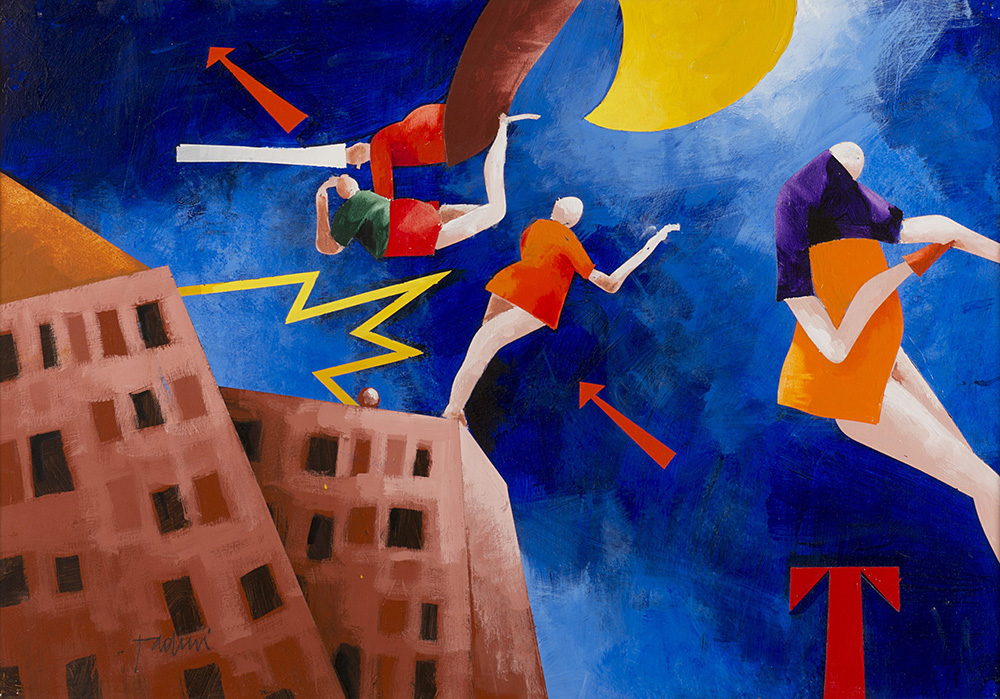 Emilio Tadini (Milano 1927 - 2002)"Fiaba" acrilico su cartone intelatocm...
