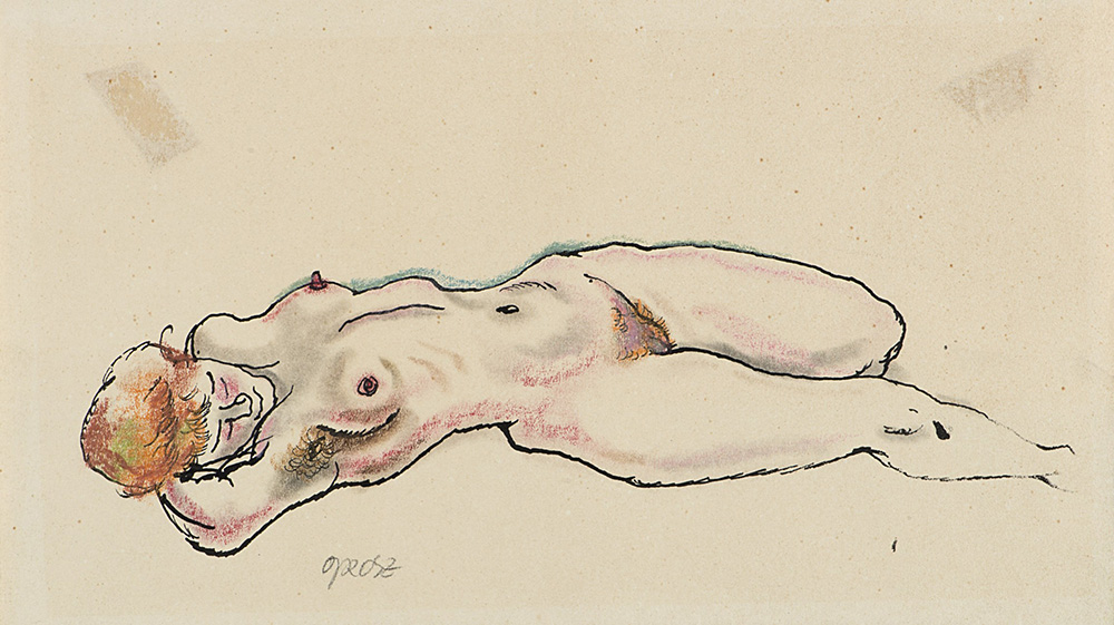 George Grosz (Berlino 1893 - 1959)"Nudo disteso" 1915tecnica mista su cartacm...