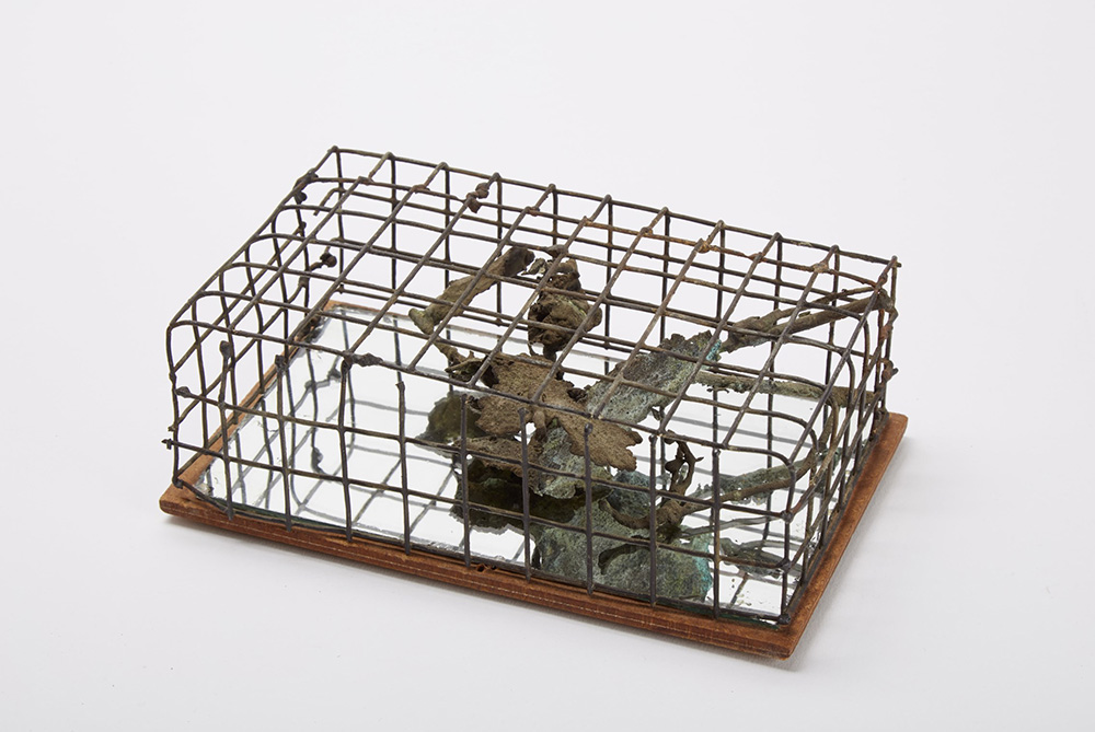 "Progetto per un tavolo" 1970 ca. iron, bronze and mirror sculpture