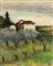 Signed, titled "Case and olive trees" and dated 1940 on the reverse