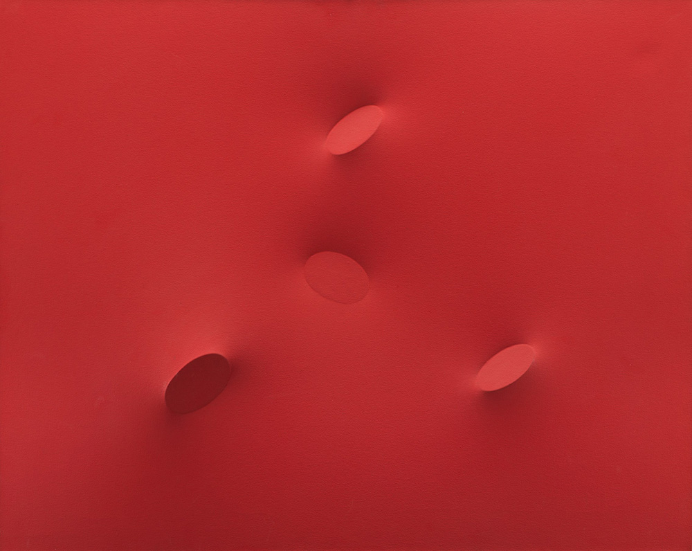 Turi Simeti (Alcamo 1929)"4 ovali rossi" 1999acrilico su tela sagomatacm...