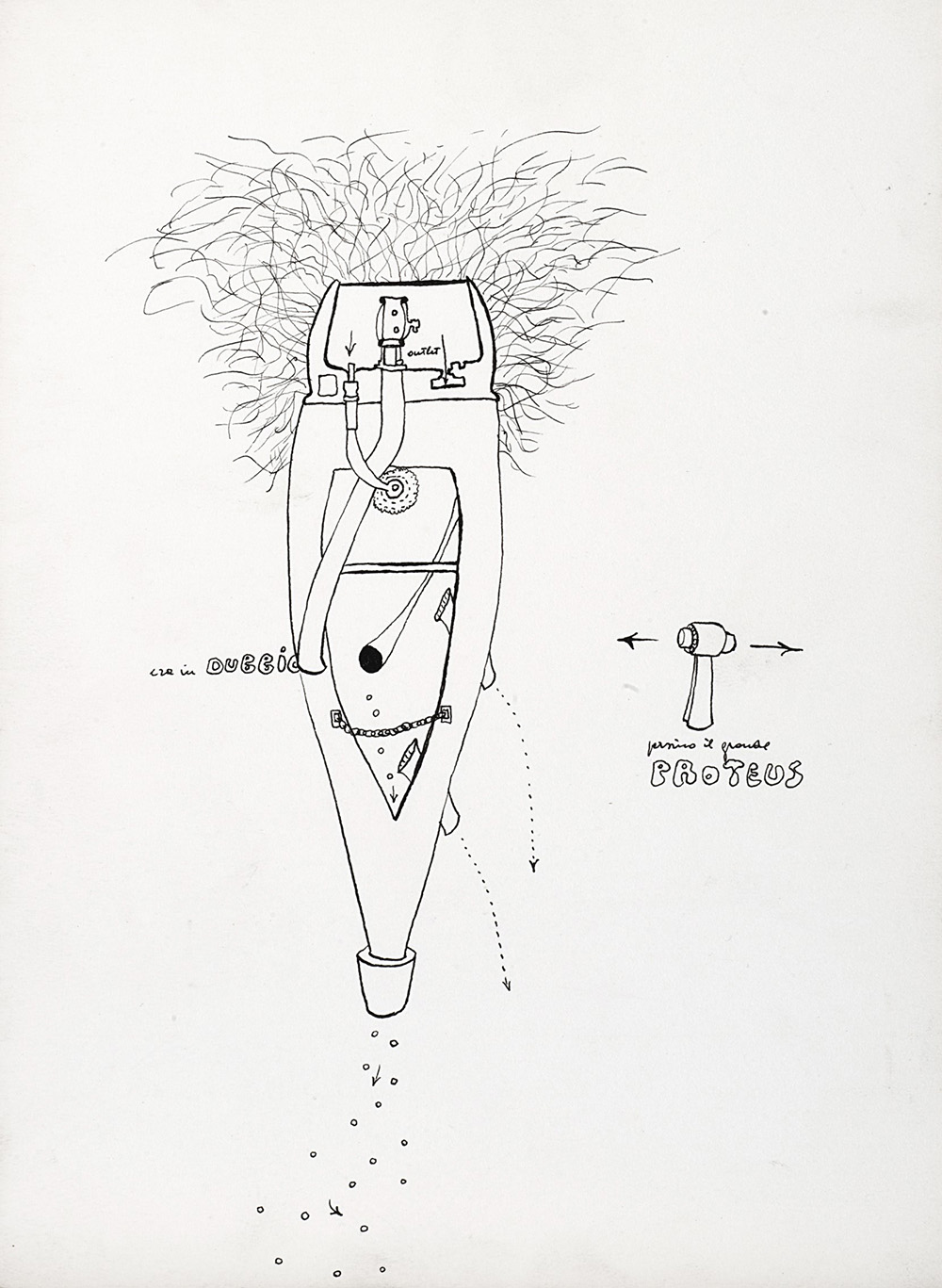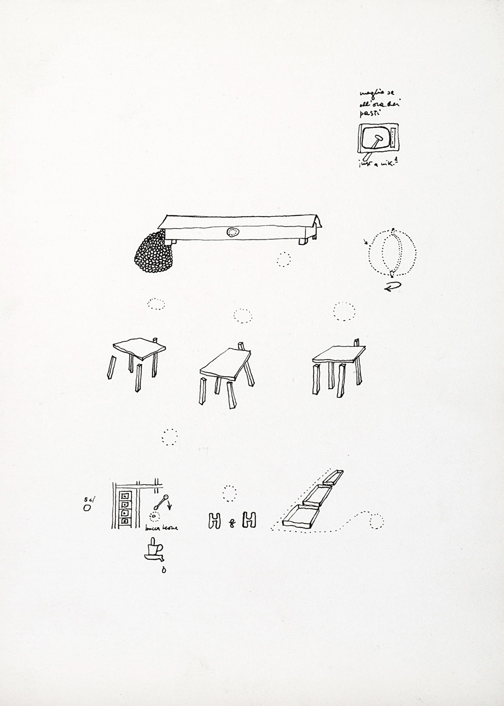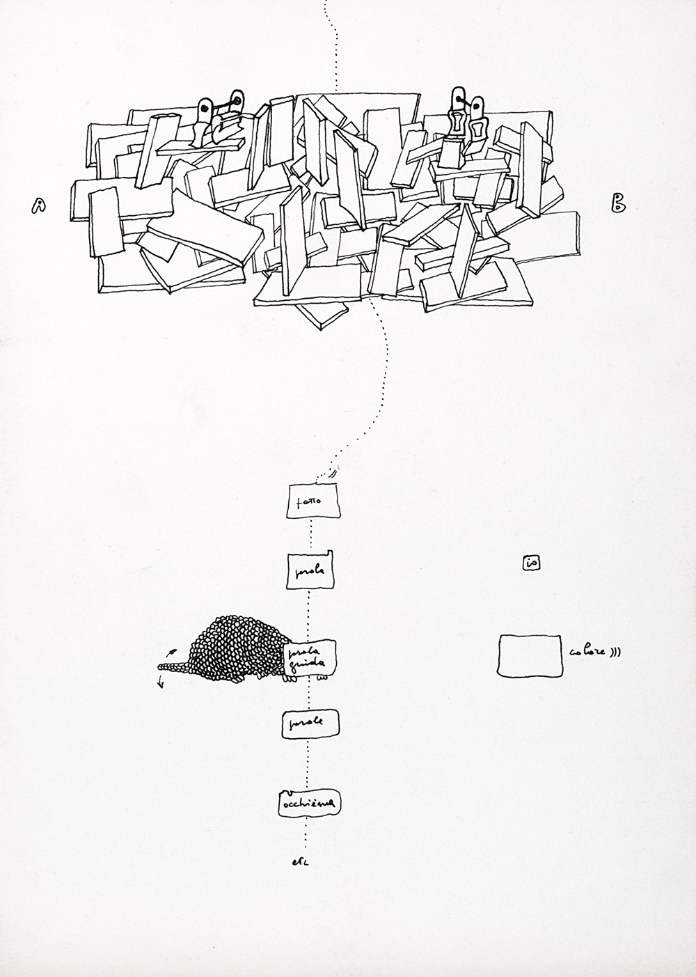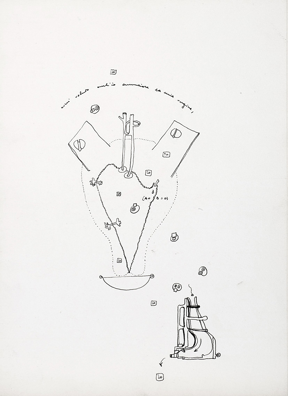 Gianfranco Baruchello (Livorno 1924)Lotto di otto disegni, inchiostro su...