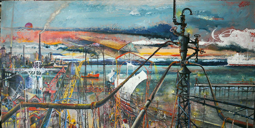 Gian Luigi Serravalli Ferrara 1949 PORTUAL MONUMENTALE 2015 Olio e smalto su lastra plexiglass preparata 48x95 Certificato di autenticità