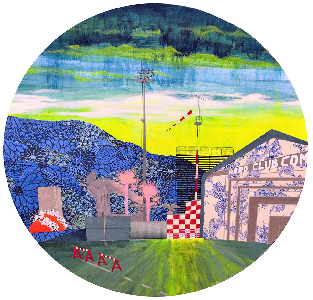 Nataliya Teslenko Turkmenistan 1981 L'idrovolante non c'è 2017 Tecnica mista: acrilico, cotone, seta, resina sul panello mdf 96x96 Certificato di autenticità
