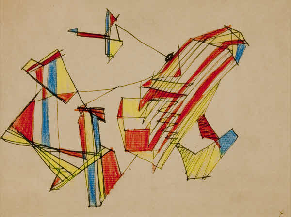 Riccardo Licata - Composizione - 1952 tecnica mista su carta cm. 18x24 - Opera archiviata presso l’Archivio delle Opere di Riccardo Licata al n. C 0612-0599 a cura della Galleria d’Arte Dante Vecchiato; Certificato di Autenticità a cura di Telemarket, Roncadelle (BS)