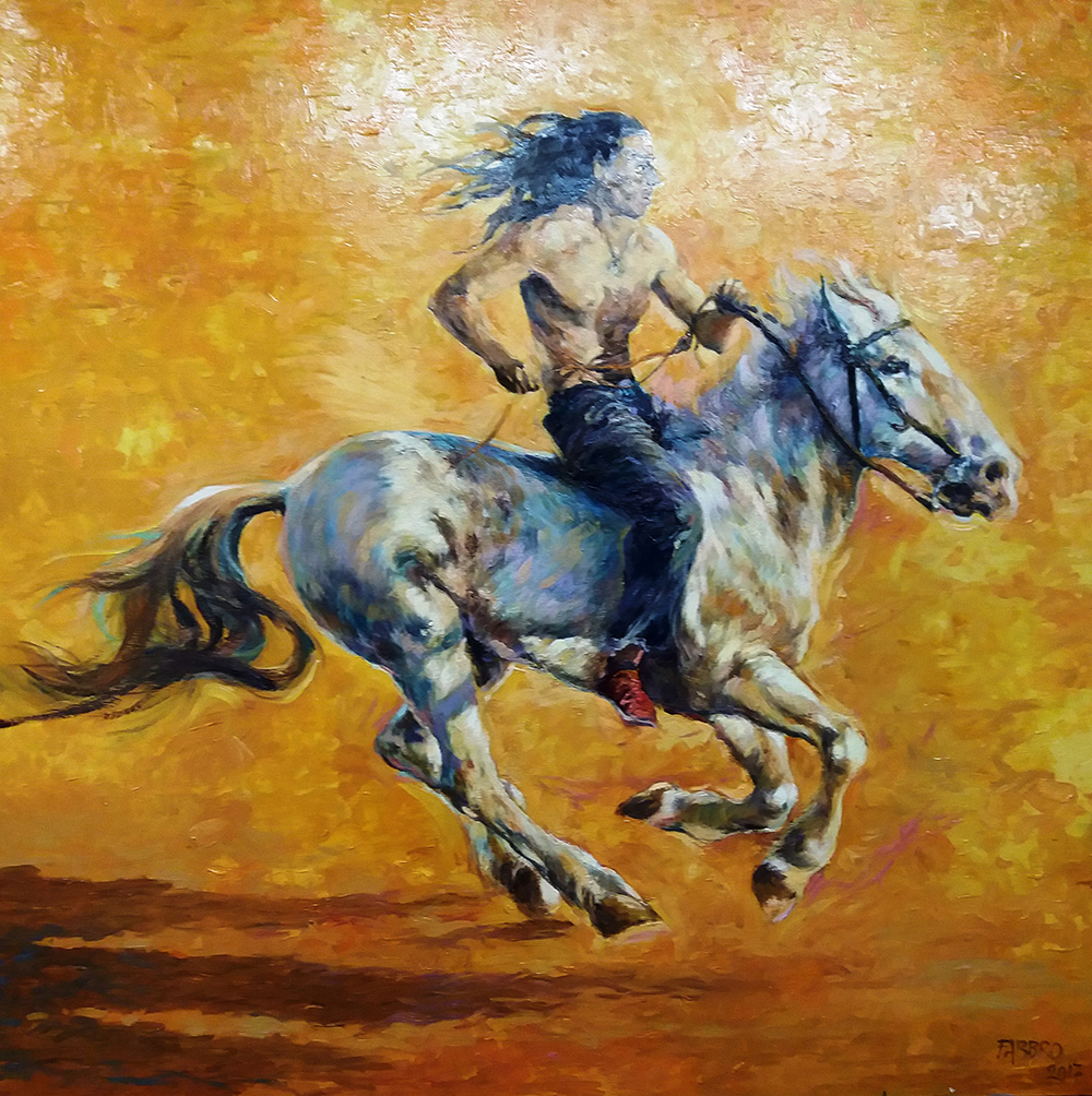 Paolo Fabbro Sesto S. Giovanni 1941 Indiano a cavallo 2017 Olio su tela 100x100 Certificato di autenticità