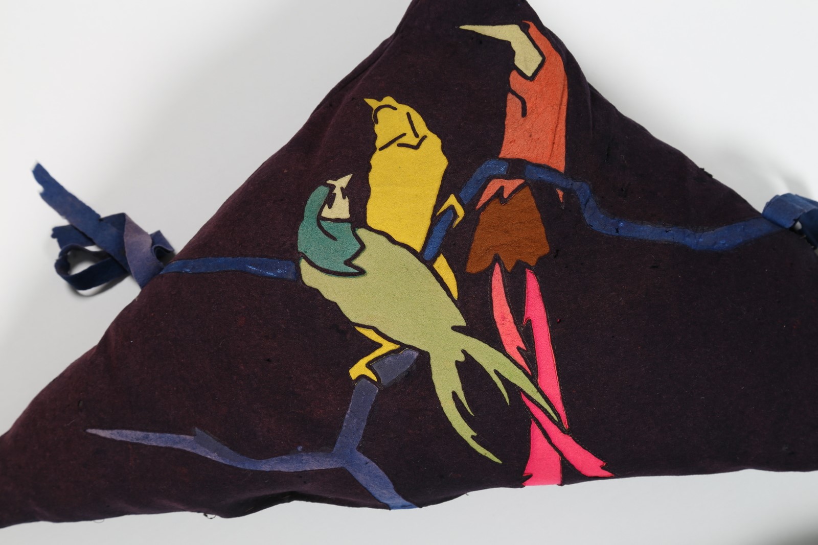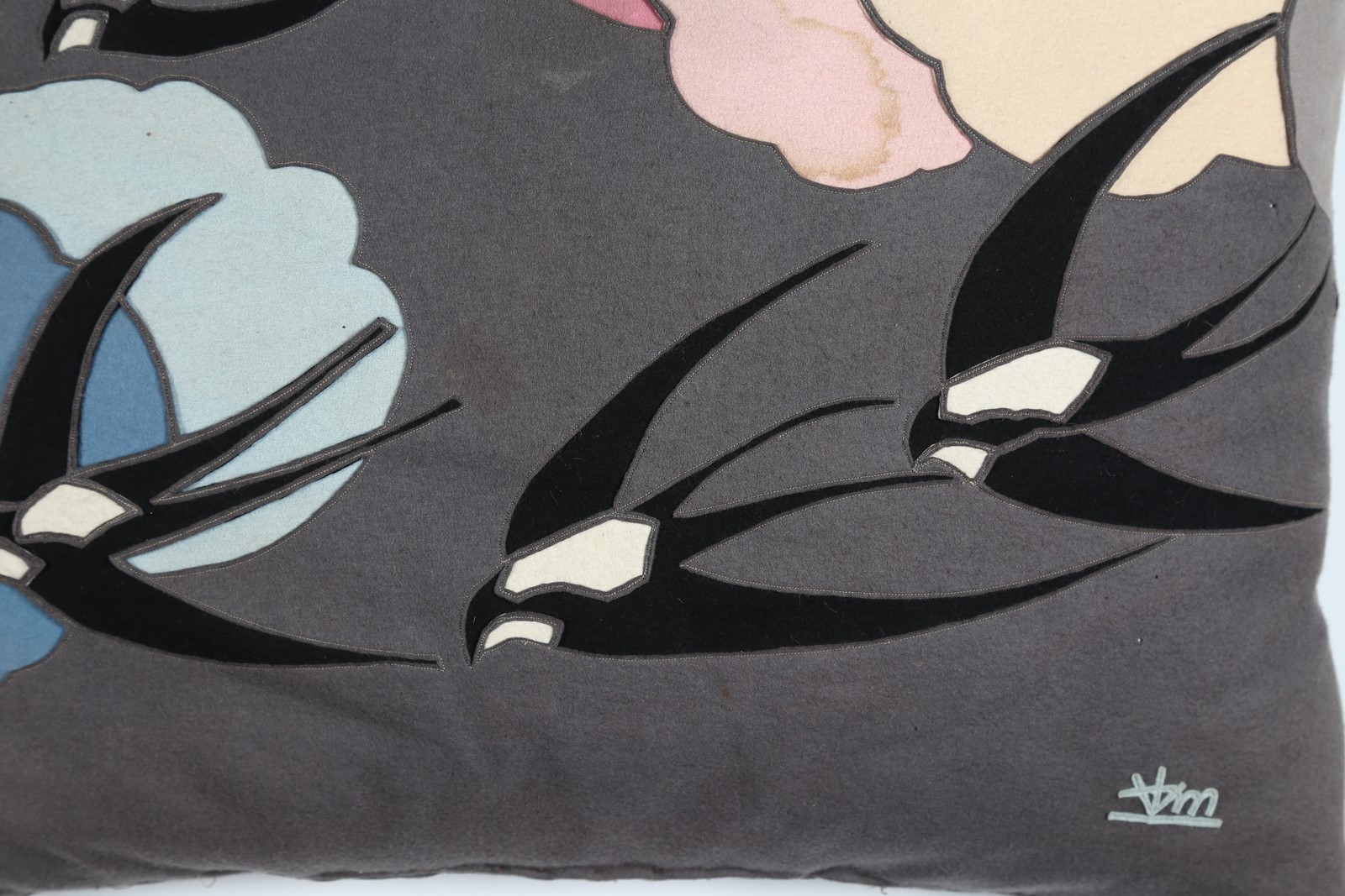 WENTER MARINI GIORGIO Coppia cuscini in panno con decori figurativi, anni 20. Provenienza eredi Wenter Marini . -. . Misure: 57 x 50 x 13 76 x 36 x 13