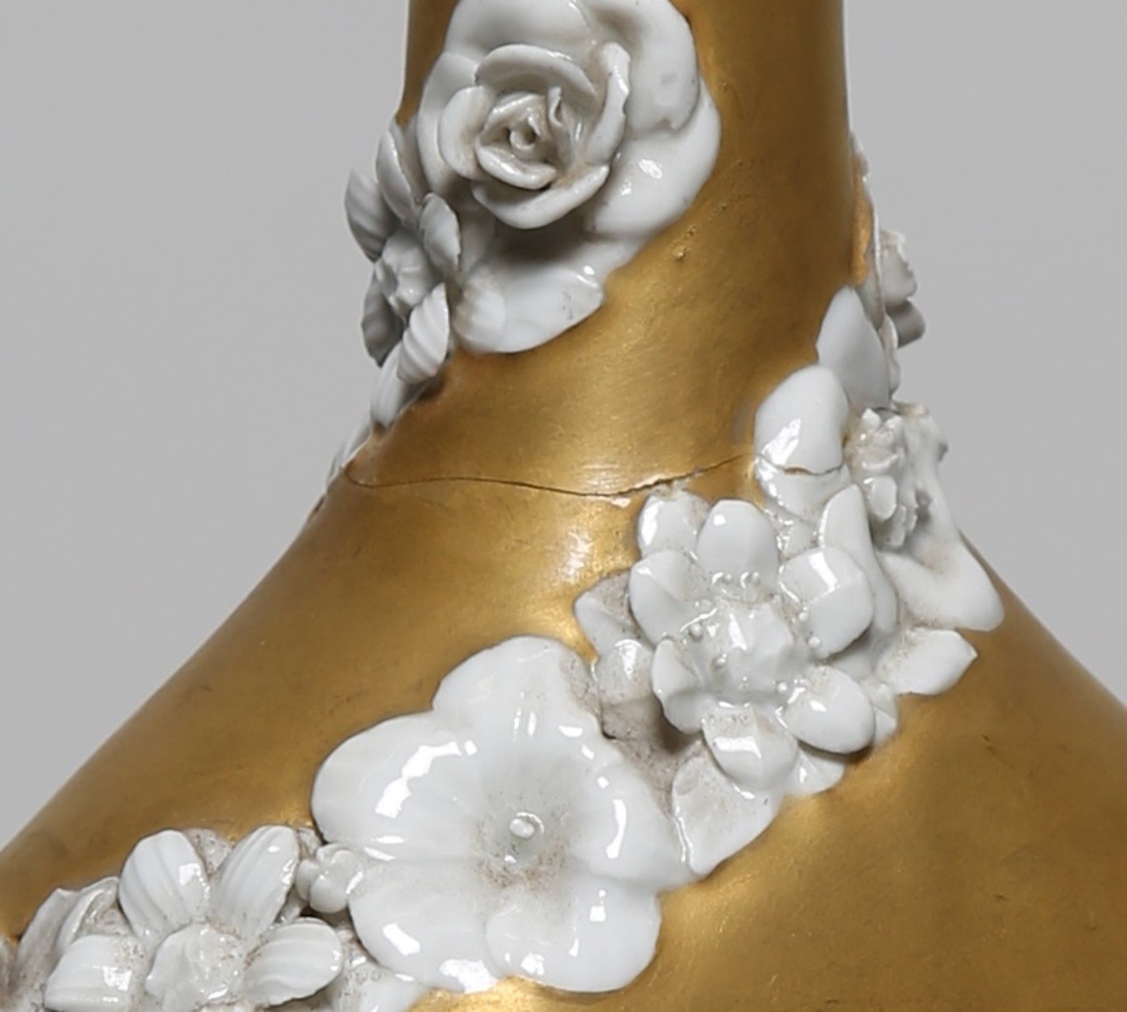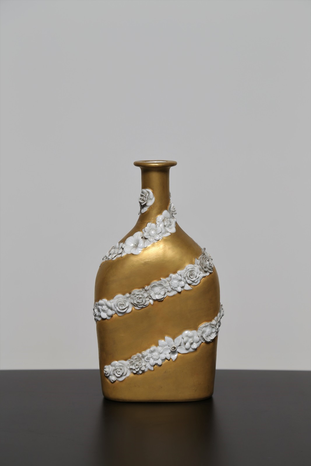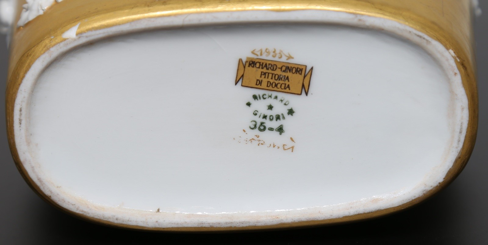 PONTI GIO' (1891 - 1979) Bottiglia in porcellana con decori a rilievo, (rotture sul collo e mancanze sul bordo superiore), per Ceramiche e porcellane Richard-Ginori, Manifattura di Doccia, Sesto Fiorentino 1923/1938. . . Cm 23,50. Marchio etichetta e firma presente. Provenienza collezione Marchese Giuseppe Roi Vicenza. Expertise a cura di Salvatore Licitra Archives Gio Ponti Milano.
