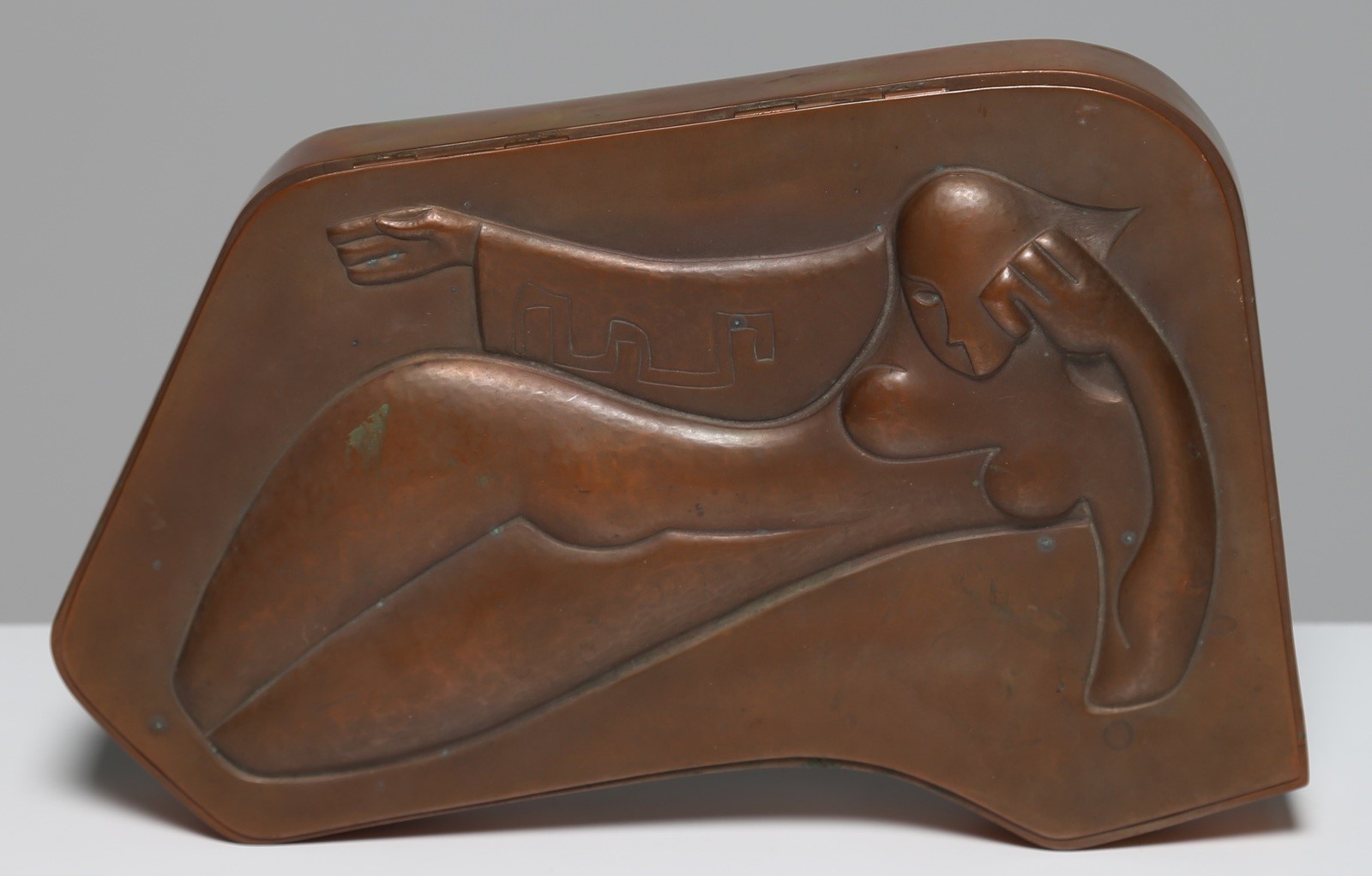 WENTER MARINI GIORGIO Scatola in rame, incisioni figure muliebre, fine anni 30° pezzo unico. Provenienza eredi Wenter Marini . -. Cm 31,00 x 4,50 x 20,00.