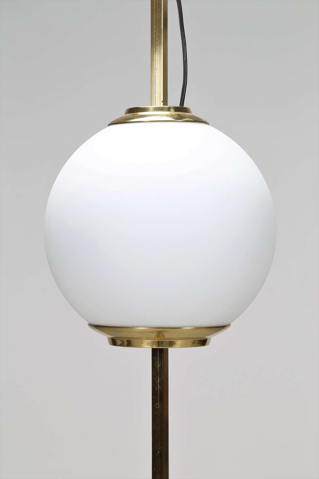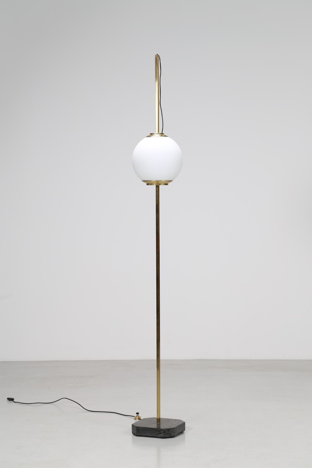 CACCIA DOMINIONI LUIGI (n. 1913) Lampada da terra in metallo vetro satinato e base in marmo, mod. LTE 10 Pallone per Azucena, 1958. . . Cm 30,00 x 222,00.