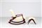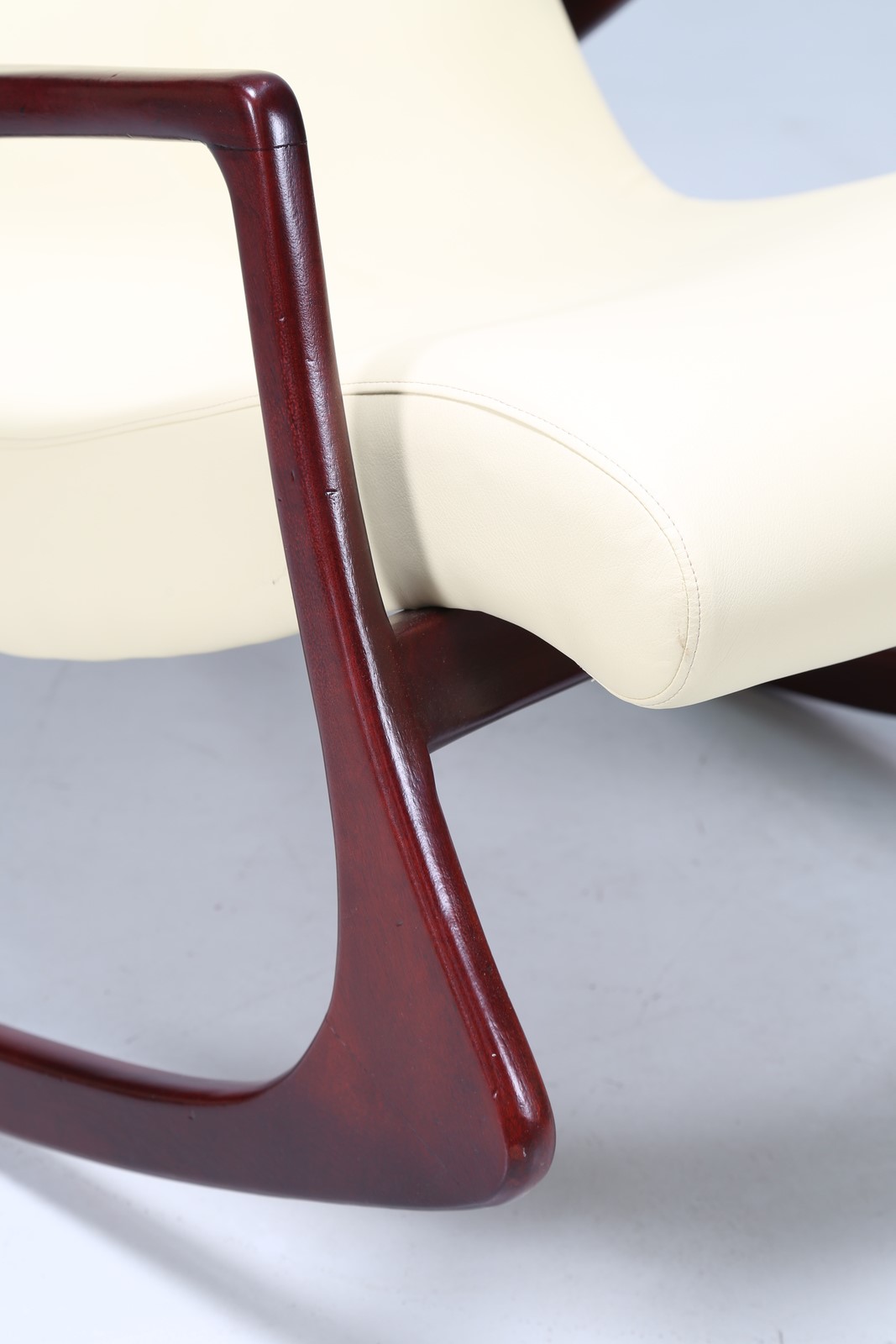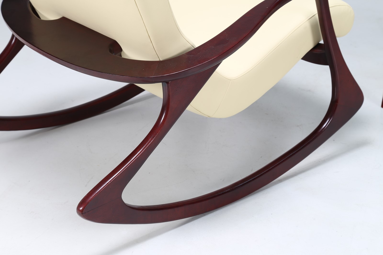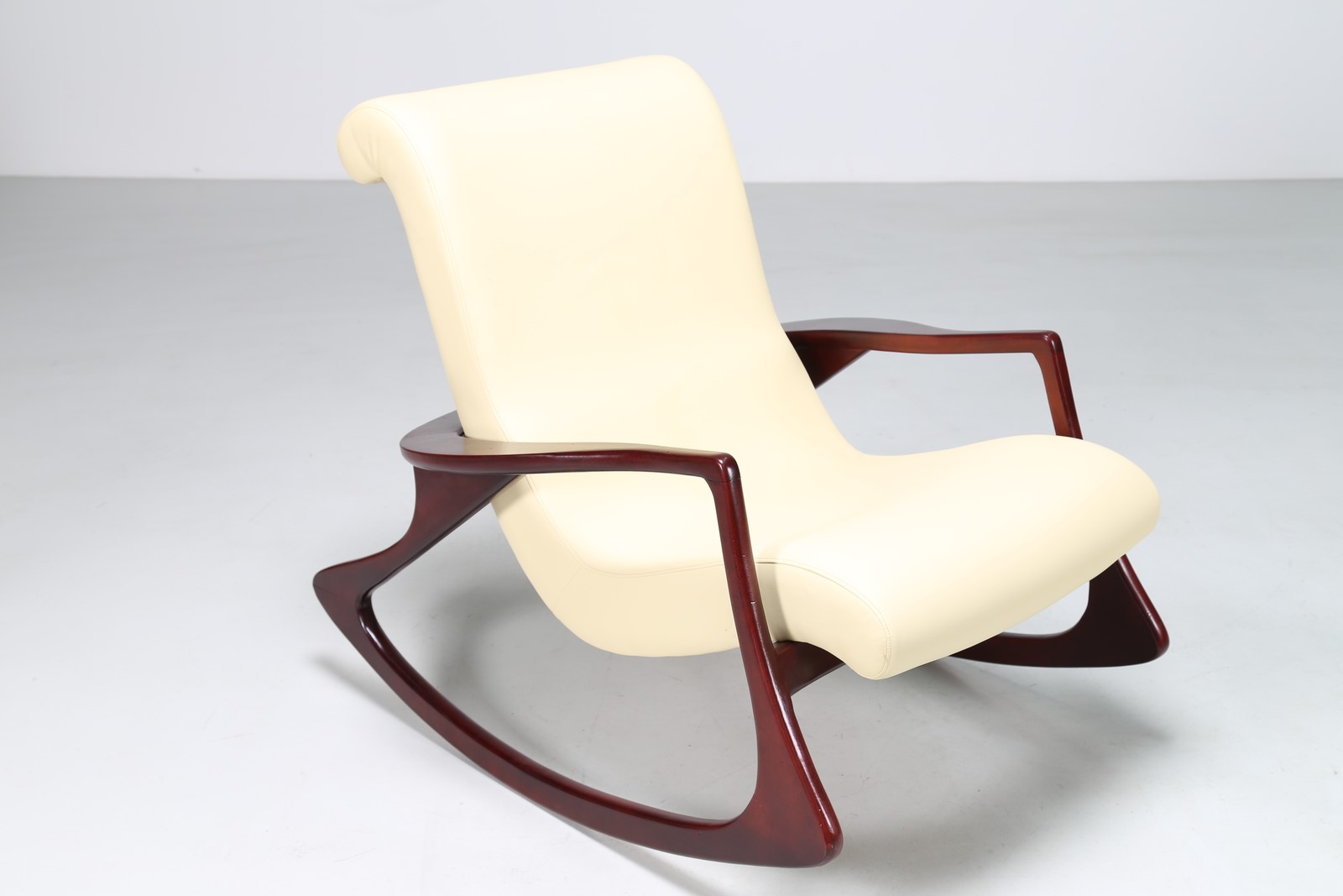KAGAN VLADIMIR Poltrona a dondolo con pouf in mogano e skai, anni 60. -. Cm...