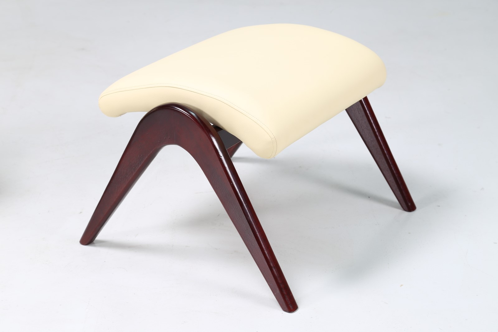 KAGAN VLADIMIR Poltrona a dondolo con pouf in mogano e skai, anni 60. -. Cm 83,00 x 92,00 x 104,00. Misura pouf: 38 x 53 x 51