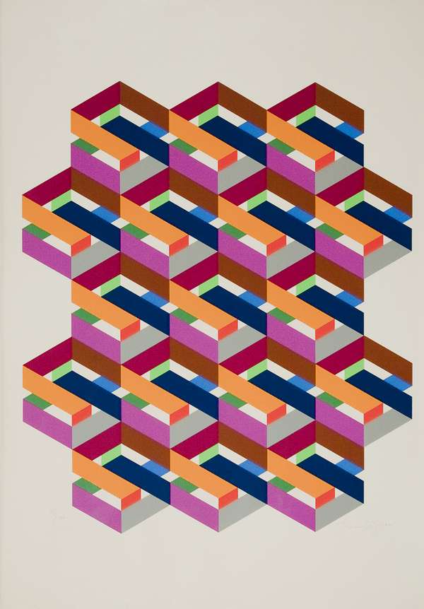 Franco Grignani Senza titolo Serigrafia, es.28/100 cm. 100x70 Firma in basso a dx. Timbro a secco in basso a sx. Serigrafia Ferappi, Vicenza