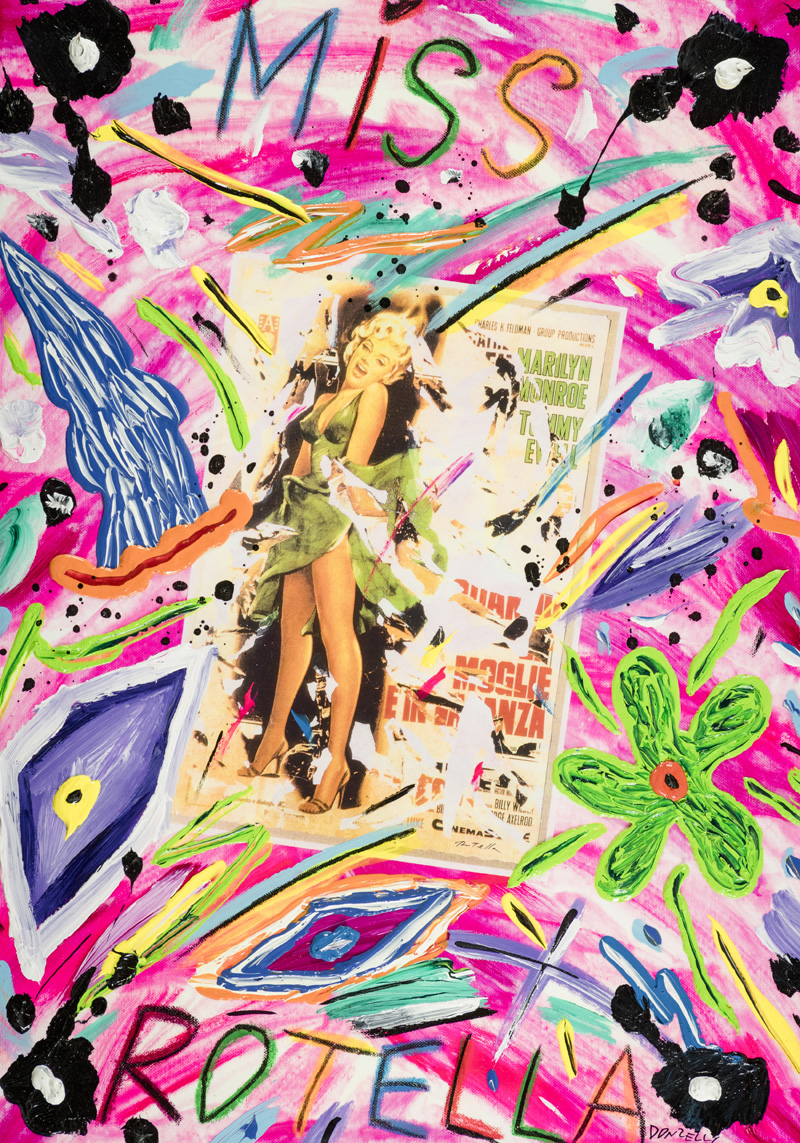 Bruno Donzelli (Napoli 1941) Miss Rotella, Olio e tecnica mista su tela, cm. 70x50. Firmato in basso a destra; Sul vero: firma e titolo. Autentica dell'Artista su foto.