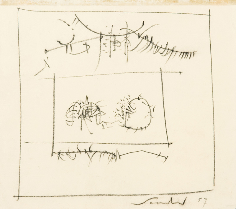 Emilio Scanavino (Genova 1922 Milano 1986) Senza titolo, 1957 Grafite su carta, cm. 29,5x35. Firma e data in basso a destra. Bibliografia: Alberto Zanchetta "Emilio Scanavino opere 1954 - 1983" Ediz. Dep Art, Milano, pag. 10. Autentica di Giorgina Graglia Scanavino su foto.