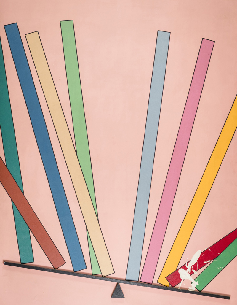 Aldo Mondino (Torino 1938 2005) Anniversario privato, 1965-67 Olio e legno su tela, cm. 180x130. Sul verso: firma, data e titolo. Autentica dell'Archivio Aldo Mondino con timbro a secco e firma "Antonio Mondino" e Archivio.