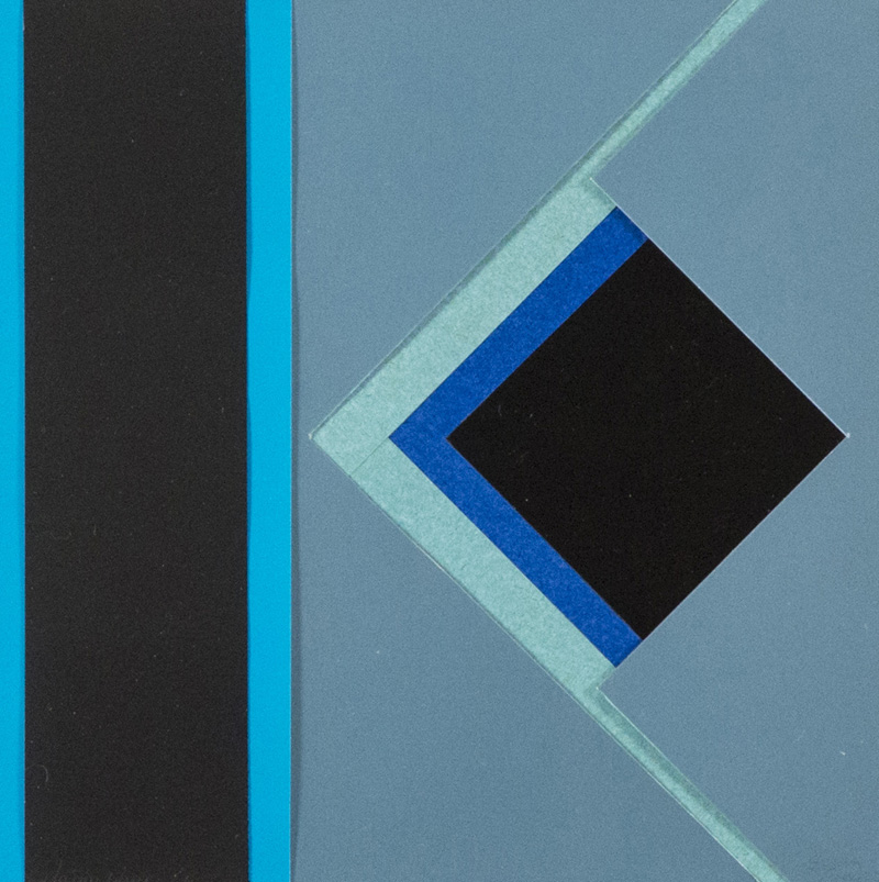 Horacio Garcia Rossi (Buenos Aires 1929 ) Decoupage 4, 1977 Collage di cartoncini applicati su tavola, cm. 22x22. Firma e data in basso a destra, titolo in basso a sinistra. Sul verso: firma, data e dedica a persona.