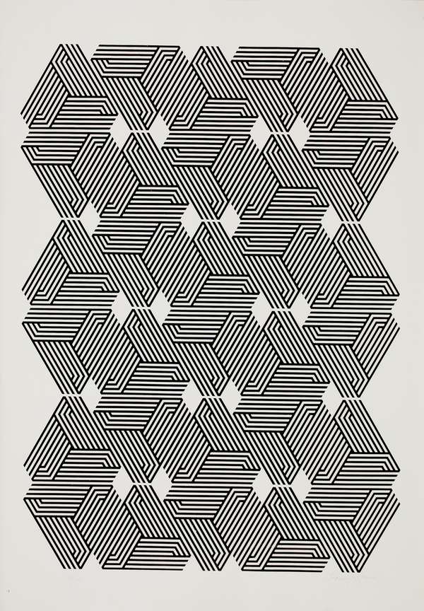Franco Grignani Senza titolo Serigrafia, es.28/100 cm. 100x70 Firma in basso a dx. Timbro a secco in basso a sx. Serigrafia Ferappi, Vicenza