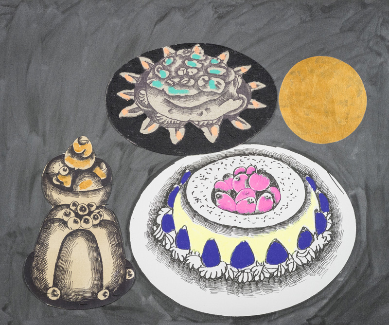 Concetto Pozzati (Vò di Padova 1935 Bologna 2017) Quasi dolce, 2011 Acrilico collage e tecnica mista su tela, cm. 50x60. Sul verso: firma, data e titolo. Provenienza : Galleria Giraldi ,Livorno.