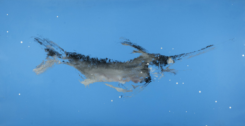 Massimo Barzagli (Marradi (Fi) 1960 ) La spinta di marea, 1993 Smalti su tela plastificata, cm. 100x191. Sul verso: firma e data.