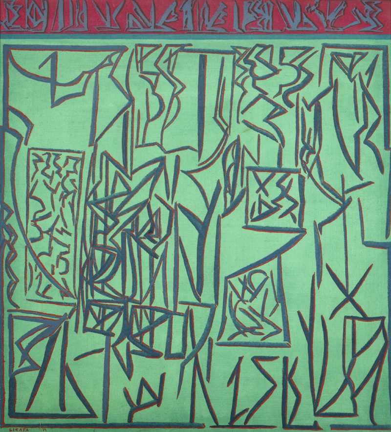 Riccardo Licata (Torino 1929 Venezia 2014) Senza titolo, 1974 Olio su tela, cm. 100x91. Firma e data in basso a sinistra. Etichetta: "Galleria Schettini", Milano con descrizione. Etichetta: "Galleria d'Arte Spagnoli", Firenze, con descrizione. Autentica dell'Artista su foto.