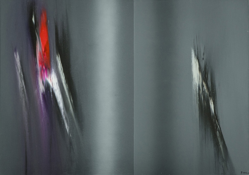 Ennio Finzi (Venezia 1931 ) Spazio percettivo in grigio, Olio su tela, cm. 50x70. Firmato in basso a destra. Sul verso: firma e titolo. Autentica dell'Artista su foto.