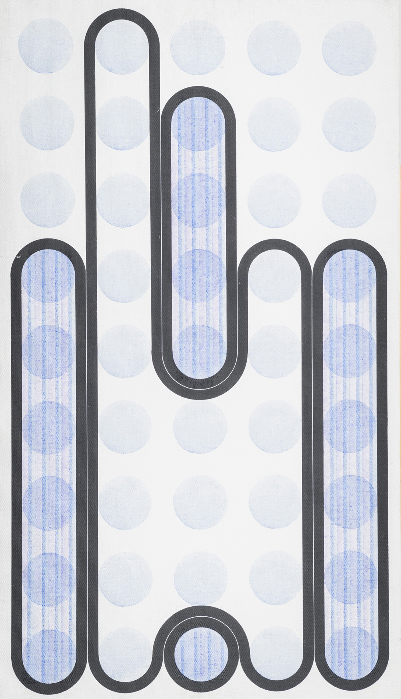 Carlo Nangeroni (New York 1922 ) Senza titolo, 1974 Acrilico su tela applicata su tavola, cm. 105x60. Sul verso: firma e data. Etichetta e Timbri "Galleria d'Arte Contemporanea Gastaldelli", Milano, con descrizione.