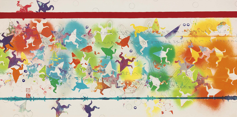 Alighiero Boetti Torino 1940 - Roma 1994 Rane Serigrafia su carta, es. 9/75, cm. 60x120 (carta) Firma e tiratura in basso a destra: Alighiero e Boetti 9/75. Dalla cartella La natura, una faccenda ottusa, Edizioni Studio Fornaresio, Milano