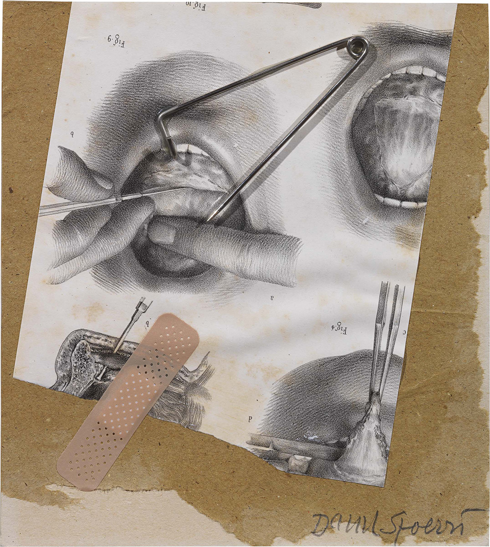 Daniel Spoerri Galati 1930 Spingole francesi, 1993 Collage su carta, cm. 21x19 Firma in basso a destra: Daniel Spoerri. Certificato su foto di Riccardo Costarelli, Galleria Ammiraglio Acton, Milano, 15/10/94