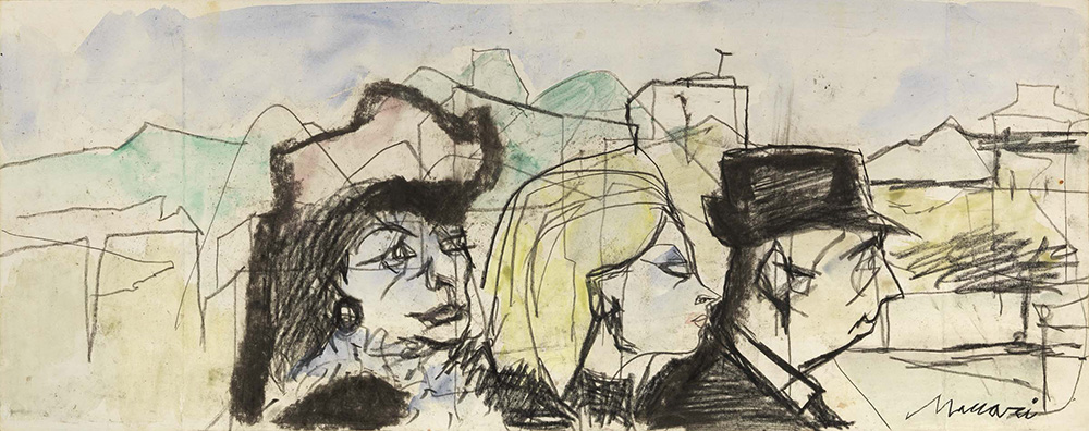 Mino Maccari Siena 1898 - Roma 1989 Figure, 1965 Acquerello e carboncino su...