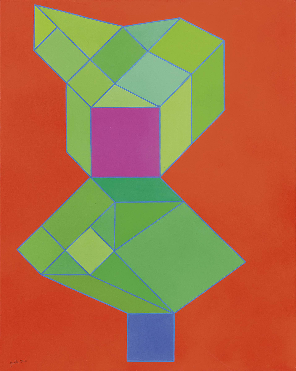 Achille Perilli Roma 1927 L'attrappatopi, 2006 Tecnica mista su tela, cm. 81x65 Firma e data in basso a sinistra: Perilli 2006; firma, data e titolo al verso sulla tela: Achille Perilli / 2006 / L'attrappatopi. Storia: Galleria Rosenberg, Milano; Collezione privata Opera registrata presso l'Archivio Achille Perilli al n. 98 dell'anno 2006.