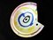 Kenneth Noland PICASSO! – 1994 piatto in ceramica in parte smaltato e in parte dipinto a freddo cm. diam. 45 Autentica e Certificato di garanzia a cura di Graziano Marini Il piatto è stato volutamente rotto dall'autore prima della cottura e prima della decorazione L'opera fu eseguita a Todi presso il Centro Internazionale della Ceramica Montesanto. Nel 1978 Piero Dorazio e Graziano Marini, insieme con Giuliana Soprani e Nino Caruso, fondano il Centro Internazionale della Ceramica Montesanto, dove lo stesso Marini assume la carica di direttore artistico e coordinatore, che ricoprirà per quattordici anni. Durante tale periodo ha modo di conoscere e collaborare con alcuni tra i più grandi protagonisti del panorama artistico internazionale, quali Max Bill, Sebastian Matta, Kenneth Noland, Joe Tilson, Luigi Veronesi, Carla Accardi e molti altri.