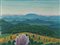 Gerardo Dottori Perugia 1884 - 1977 Paesaggio umbro, (primi anni Cinquanta) Tecnica mista su cartone, cm. 34,8x46,7 Firma in basso a destra: Dottori; firma, titolo e scritta al verso: Gerardo Dottori / "Paesaggio umbro" / 1925: timbro Galleria d'Arte Linea 70, Sansepolcro. Certificato con foto Archivi Dottori, Perugia 11/3/2014, con n. 2285.