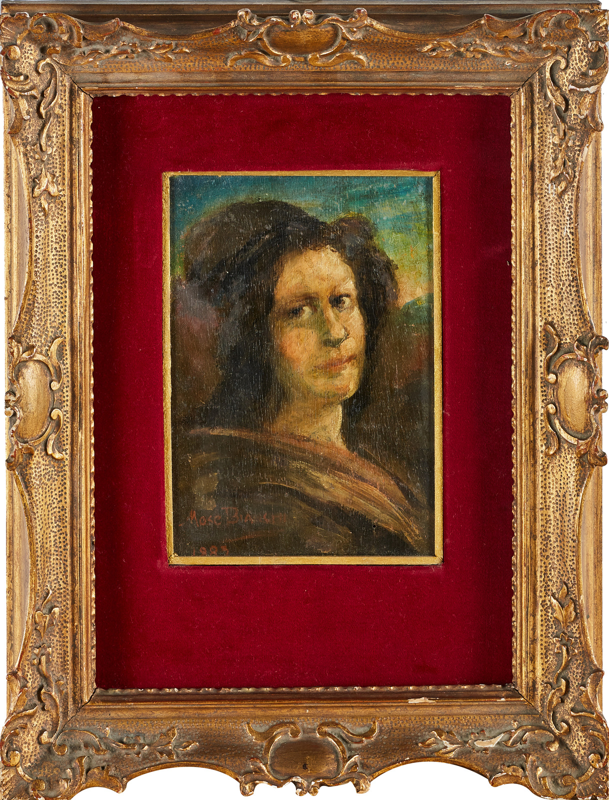 BIANCHI MOSE' (1840 - 1904) Attribuito a. Ritratto di donna. 1883. Olio su tavola. Cm 17,00 x 23,00. Firma e anno in basso a sinistra. Cornice presente