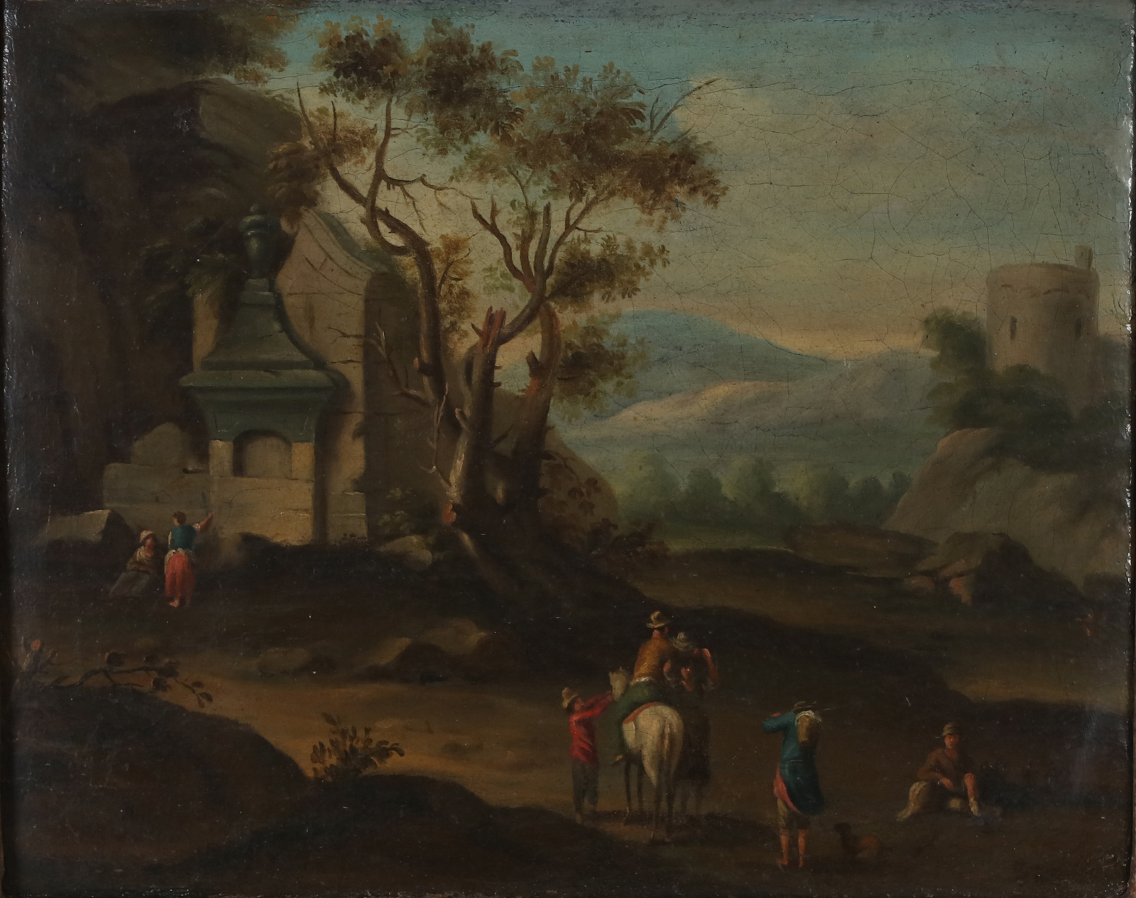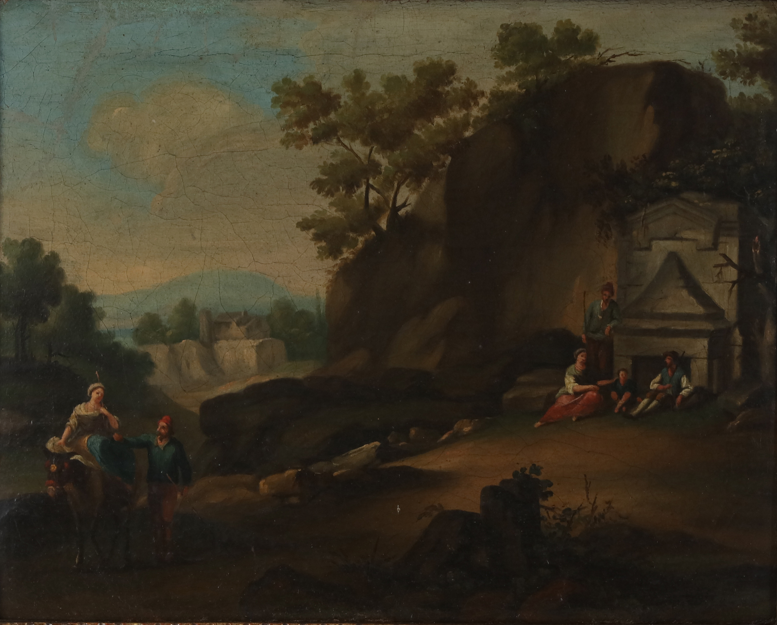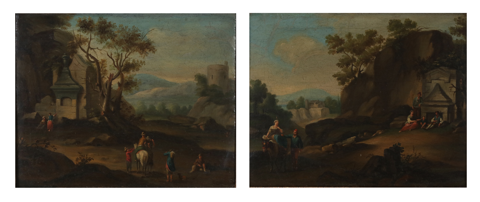 ARTISTA ITALIANO DEL XIX SECOLO Coppia di paesaggi con ruderi. Olio su tela ....
