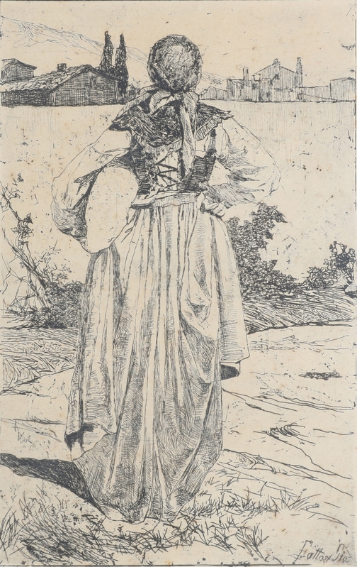 FATTORI GIOVANNI (1825 - 1908) Donna del Gabbro. Acquaforte. Cm 20,50 x 32,50. Firma in lastra in basso a destra. Dimensioni lastra: 32.5x20.5 cm. Lievi fioriture, ottimo stato di conservazione.