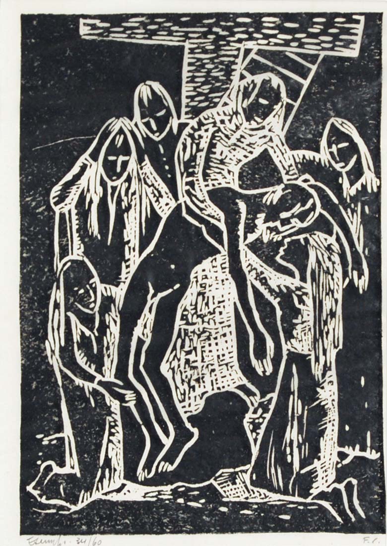 CASORATI FELICE Novara 1886 - Torino 1963 Deposizione 1938 linoincisione es. 34/60 26x18 cm sigla in basso a destra titolo e tiratura in basso a sinistra