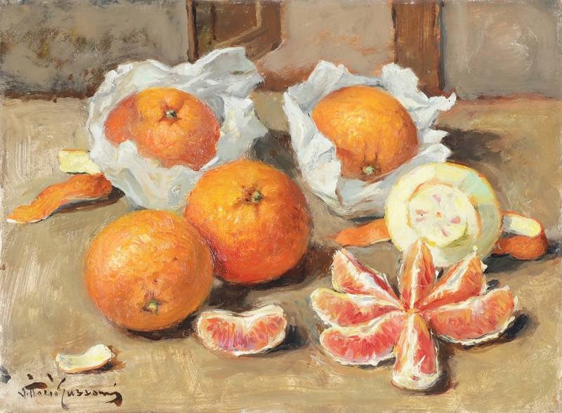 GUSSONI VITTORIO (1893 - 1968) Arance. 1953. Olio su tavola. Cm 40,00 x...