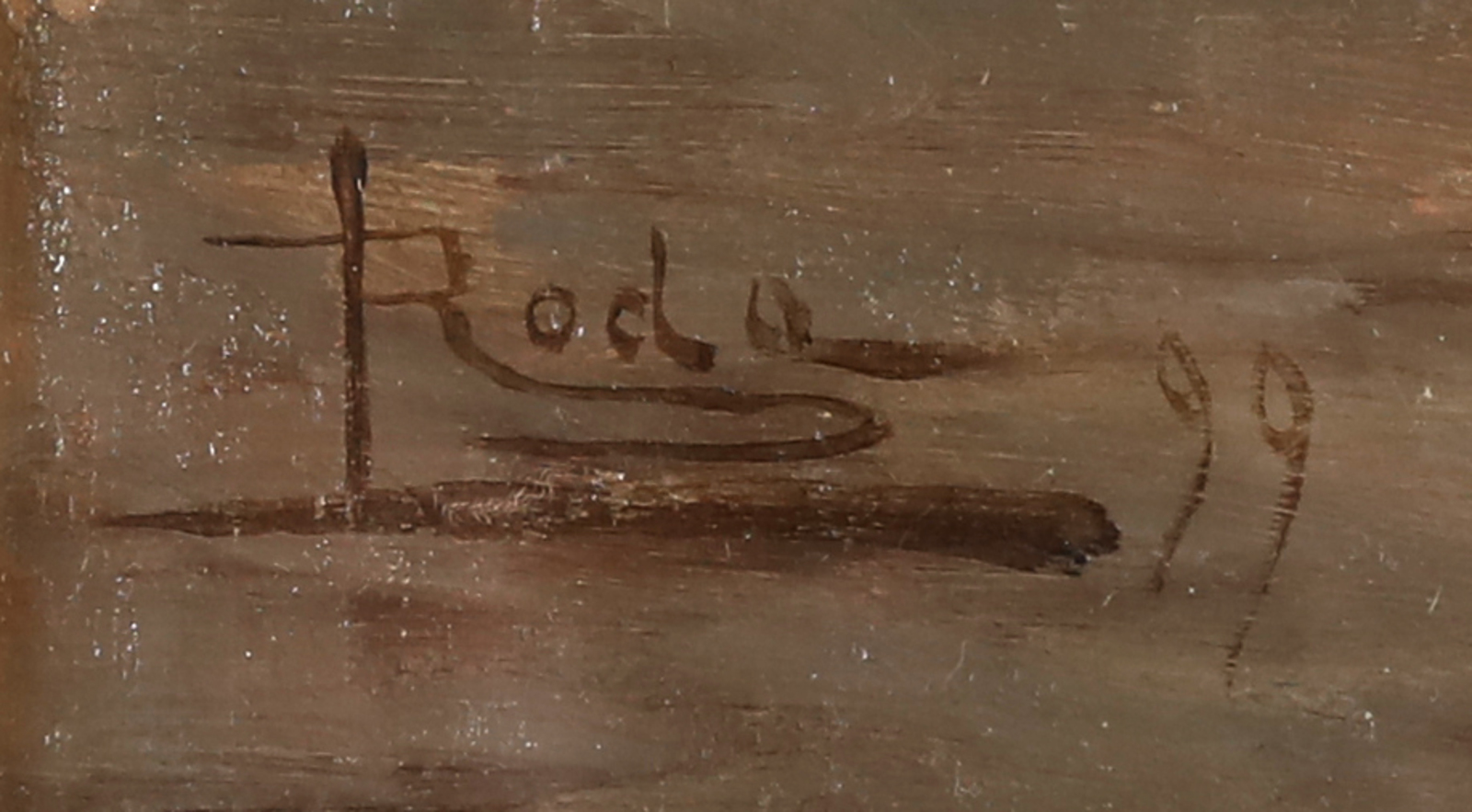 RODA LEONARDO (1868 - 1933) Autumn boulevard. 1899. Oil on board. Cm 33,00 x 48,00. Signature and year lower left.. Cornice presente