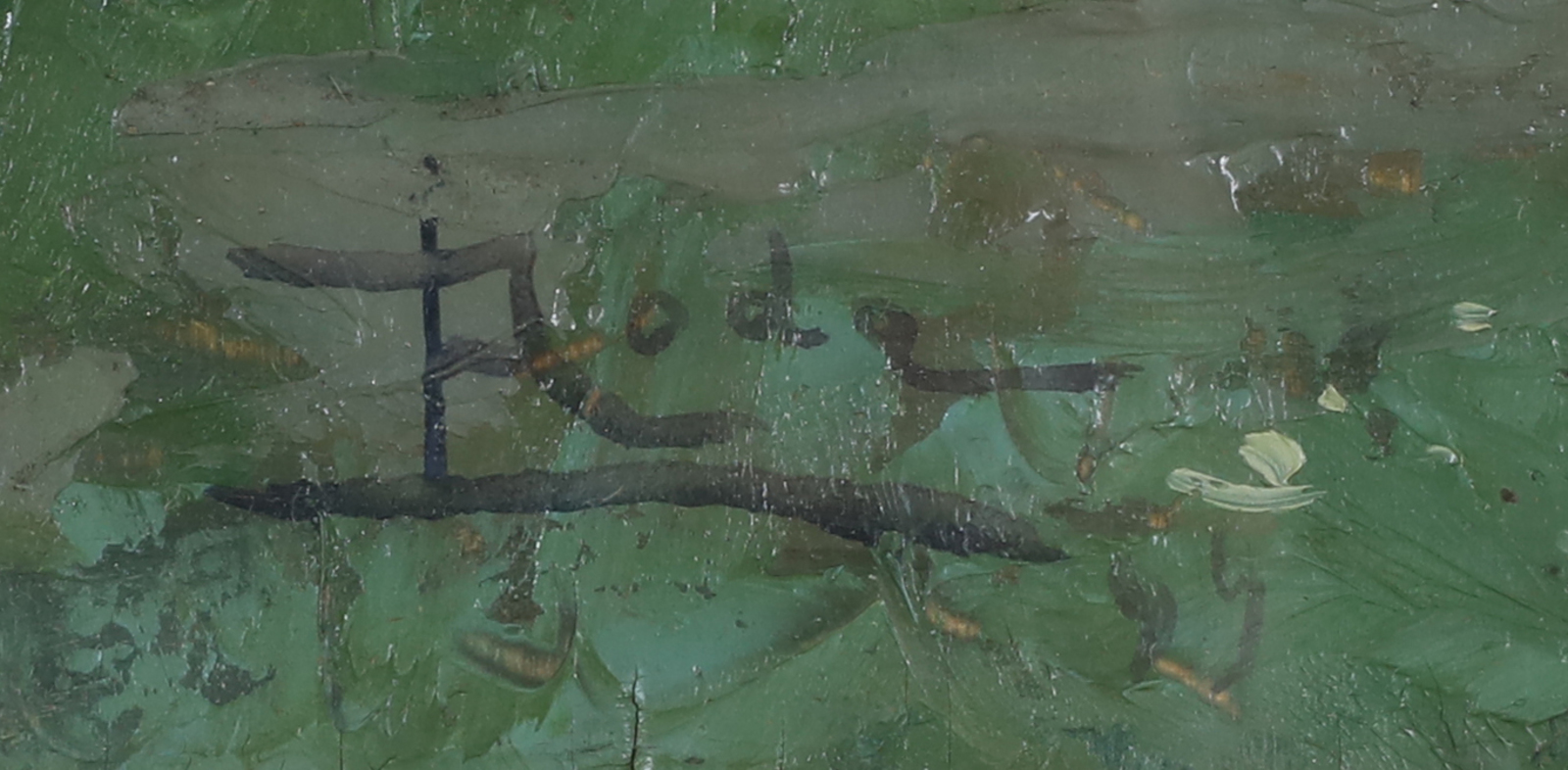 RODA LEONARDO (1868 - 1933) Mandorli. 1899. Olio su tavola. Cm 33,00 x 48,00. Firma e anno in basso a sinistra.