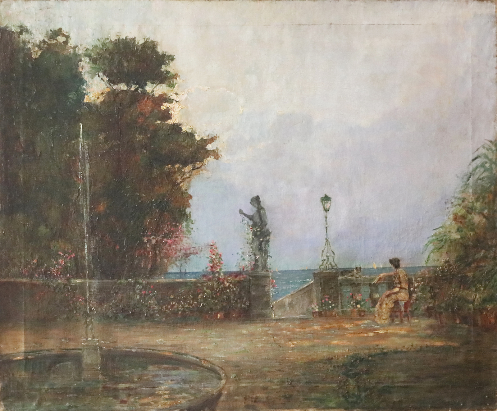 FRIGERIO LUIGI (1873 - 1936) Paesaggio con figura in giardino. Olio su tela . Cm 120,00 x 100,00. Firma in basso a destra.