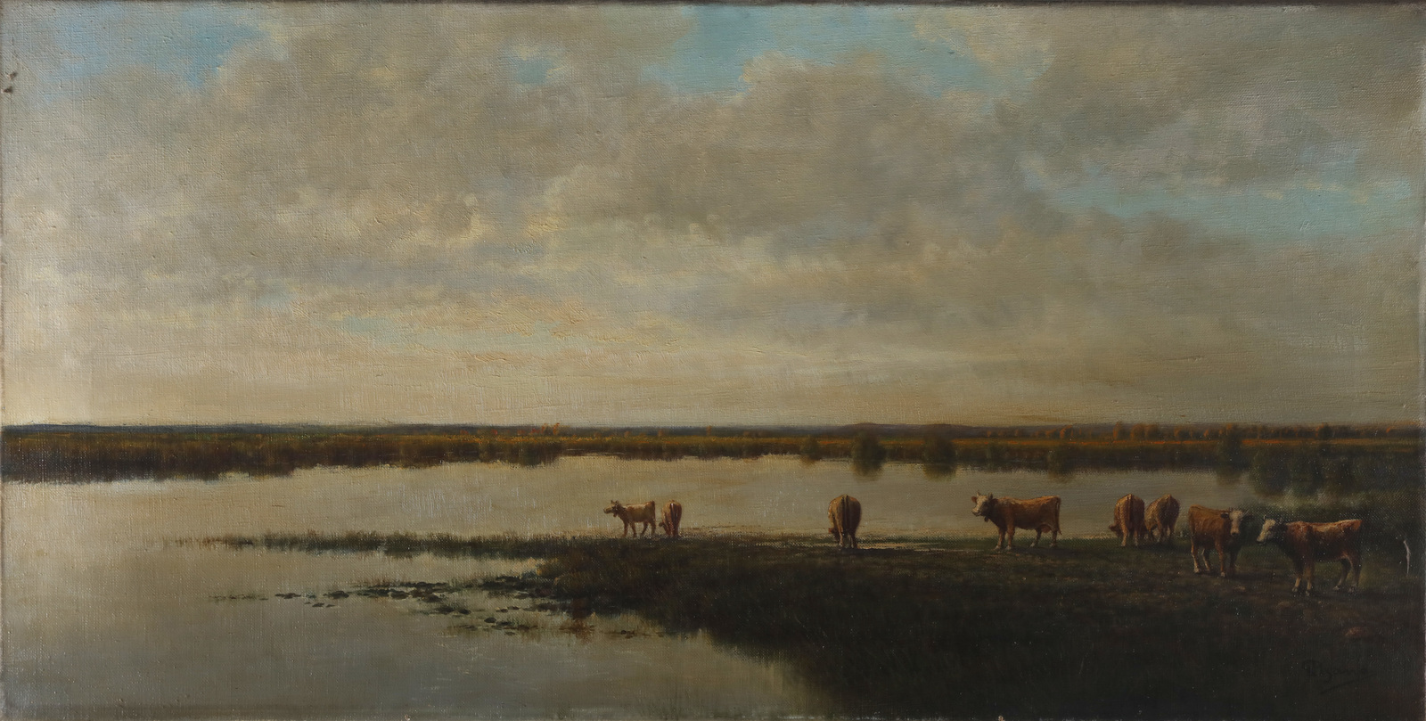 PISANO GIOVANNI (1875 - 1954) Dopo il pascolo. Olio su tela . Cm 85,00 x...