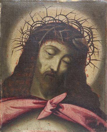 ARTISTA DEL XVI SECOLO Cristo con corona di spine. . Olio su tela . Cm 29,00 x 36,00. . Cornice presente
