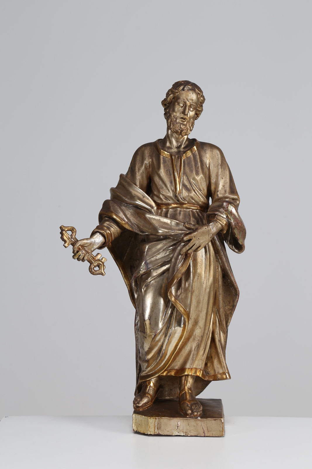 ARTISTA LOMBARDO DEL XVII SECOLO San Pietro in legno dorato a mecca. . Cm...